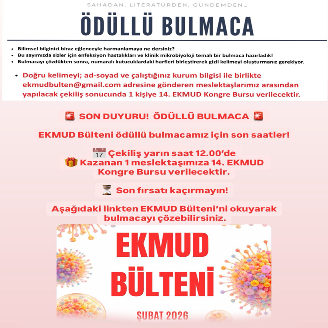 ÖDÜLLÜ BULMACA • Bilimsel bilginizi biraz eğlenceyle harmanlamaya ne dersiniz? • Bu sayımızda sizler için enfeksiyon hastalıkları ve klinik...