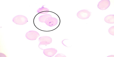 26 yaşında 10 haftalık gebe hasta, 38 Cºateş, üşüme titreme şikayetleri ile başvurdu. Başvurusundan 20 gün öncesinde Afrika’ya seyahat öyküsü olan ve 5 gündür devam eden semptomları olan hastanın periferik yayması Şekil’de görülmektedir. Aşağıdakilerden hangisi bu hastada en uygun tedavi seçeneğidir?