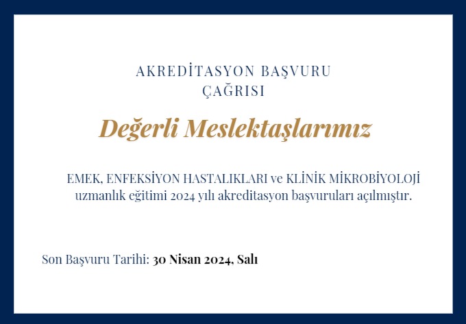 EKMUD Türkiye Enfeksiyon Hastalıkları ve Klinik Mikrobiyoloji Uzmanlık Derneği Sayın Meslektaşlarımız,