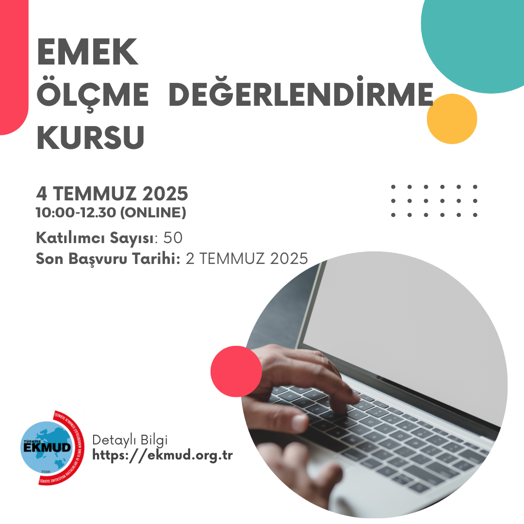 04 Temmuz 2025 tarihinde 10.00-12.30 saatleri arasında EMEK Ölçme Değerlendirme Kursu online olarak gerçekleştirilecektir.