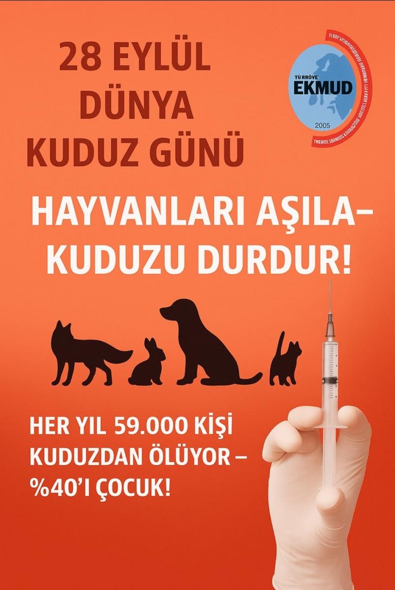 Türkiye EKMUD, 28 Eylül Dünya Kuduz Günü kapsamında bir basın bildirisi yayınlamıştır. Kuduz hastalığının önlenmesinde farkındalığı artırmayı ve toplumsal bilinci güçlendirmeyi amaçlayan bu bildiride, hastalıkla mücadelede koruyucu hekimliğin, aşının ve toplum sağlığı çalışmalarının önemi vurgulanmaktadır.