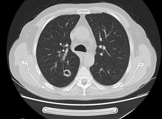 Resim 1. Hastanın akciğer tomografisindeki kaviter lezyonu