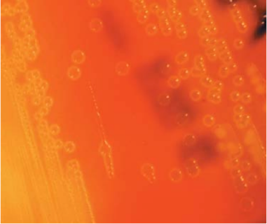 Kan kültüründe pozitiflik sinyali sonrası hazırlanan gram incelemede kısa zincirler halinde spor yapmayan gram pozitif basiller (Resim 1) görülüyor. Kanlı agarda dar beta hemoliz (Resim 2) yapan bu bakteride katalaz ve safra eskulin testi de pozitif saptanıyor.